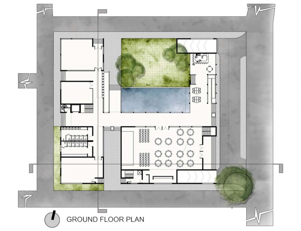 COMMUNITY CENTER GROUND FLOOR PLAN TYPE: COMMUNITY CENTERSITE: MOHAMMADPUR, DHAKAARCHITECT: SYED TAWSIF MUNAWARFUNCTIONS: MULTIPURPOSE HALL, FOODCOURT, SUPER SHOP, WARD OFFICE, GYM, DOCTOR’S CHAMBER, ETC. CONCEPTUAL PROJECT FOR ACADEMIC PURPOSE