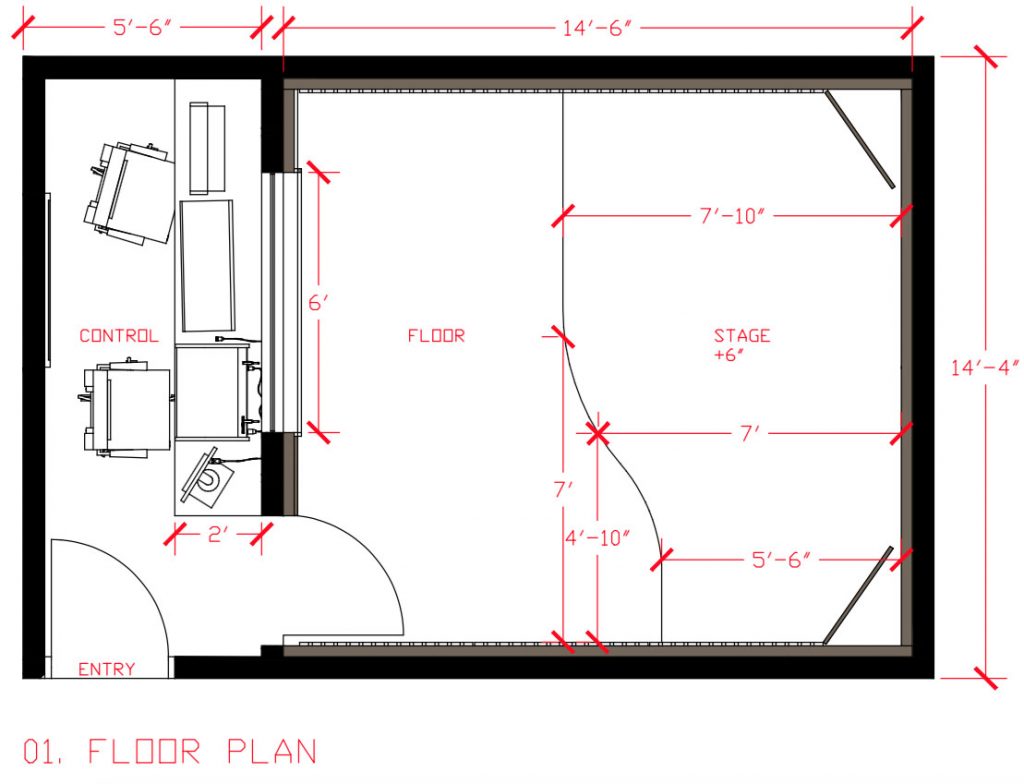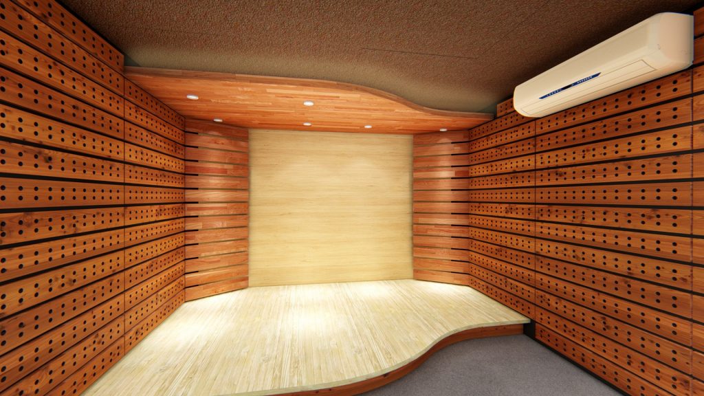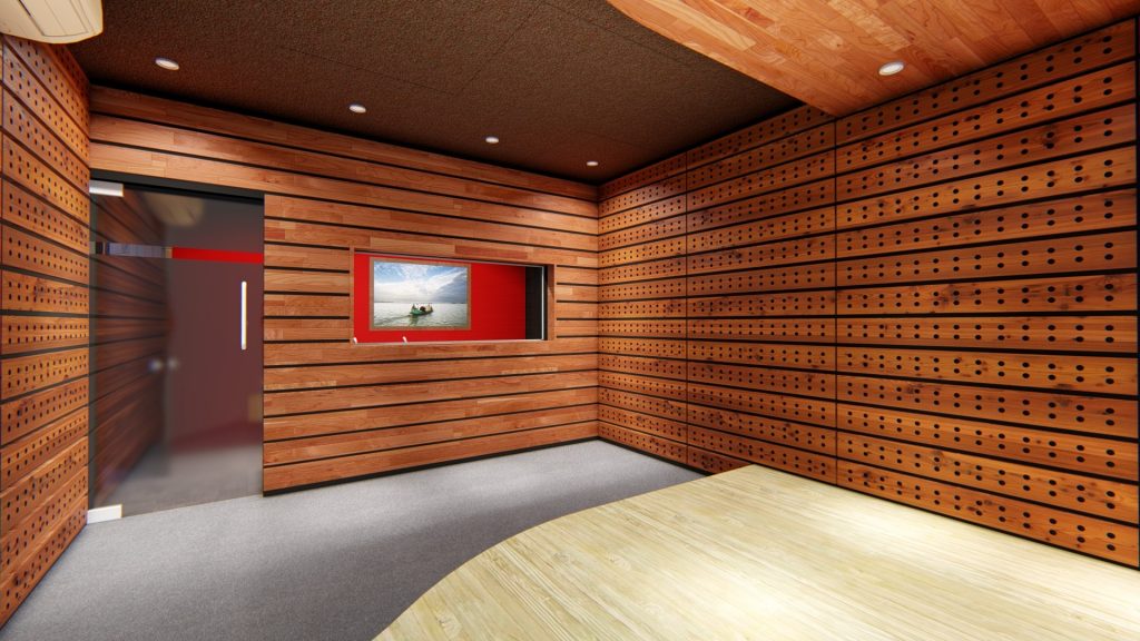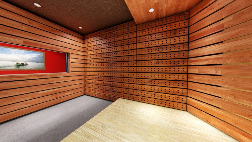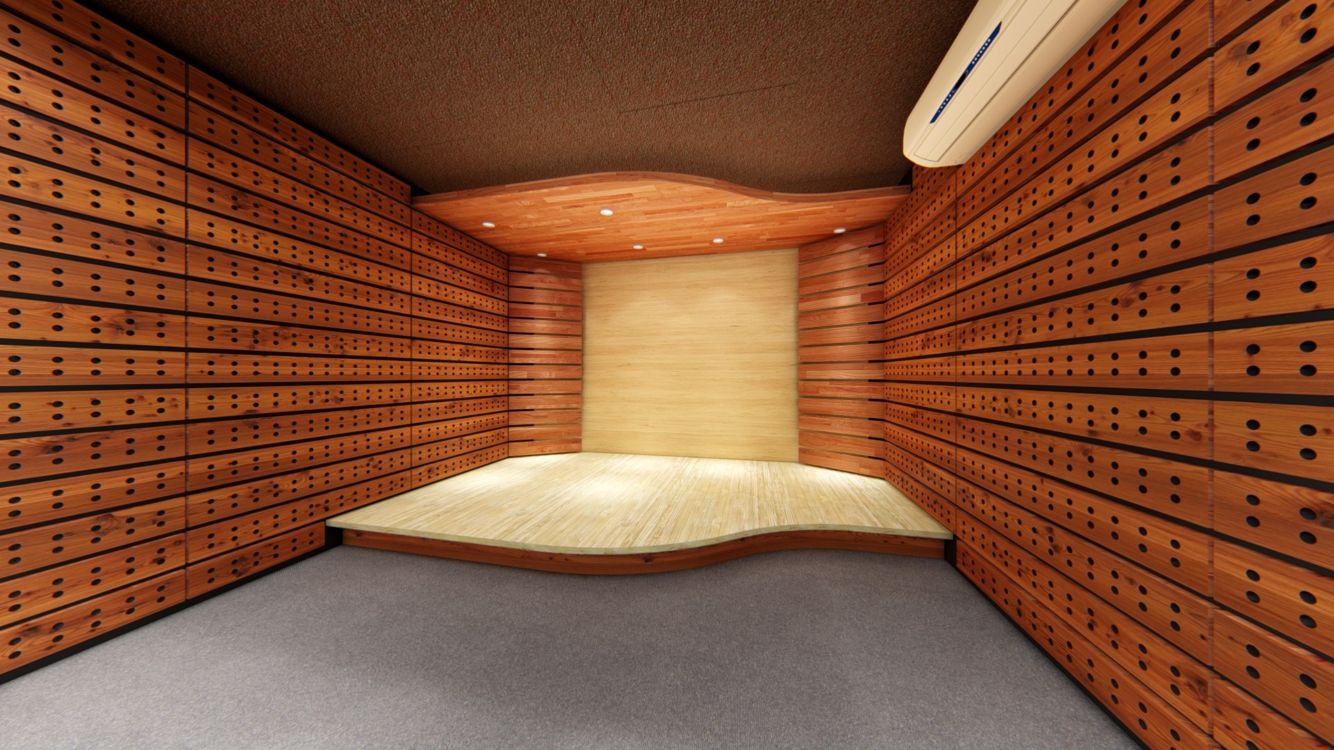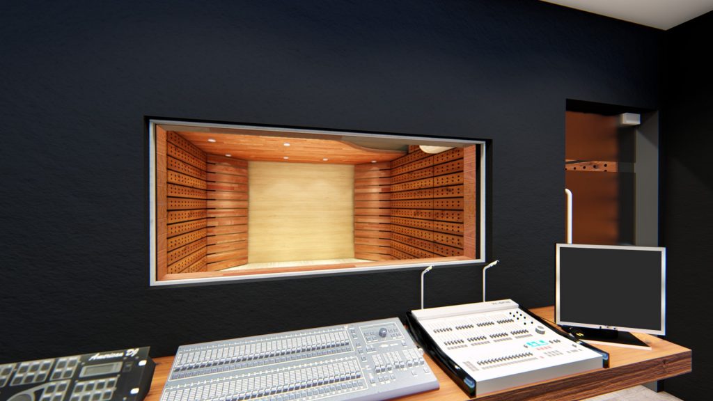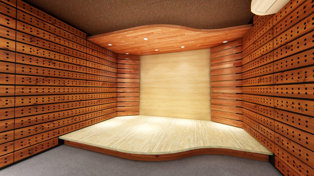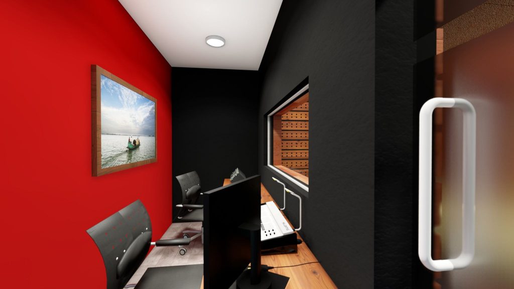 RECORDING STUDIO PROJECT TYPE: RECORDING STUDIO/INTERIORCLIENT: AHSAN JAMIL ANASLOCATION: ZILLA SHILPAKALA ACADEMY, SUNAMGANJAREA: 350 SFTARCHITECT: SYED TAWSIF MUNAWARVISUALIZATION: SYED TAWSIF MUNAWAR LAYOUT SECTIONAL ELEVATION