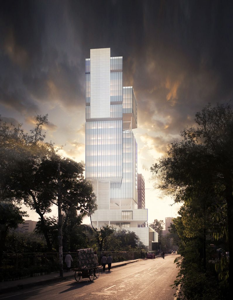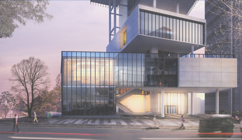 TALL BUILDING TYPE: COMMERCIAL/MIXED-USED BUILDINGSTOREY: 40+3BASEMENTLOCATION: MOHAKHALI, DHAKA, BANGLADESHLAND AREA: BUILT AREA: 252,000 SFTARCHITECT: MARUF HOSSAINVISUALIZATION: MARUF HOSSAIN GROUND FLOOR PLAN VIEW FROM ROAD CONCEPTUAL PROJECT FOR ACADEMIC PURPOSE