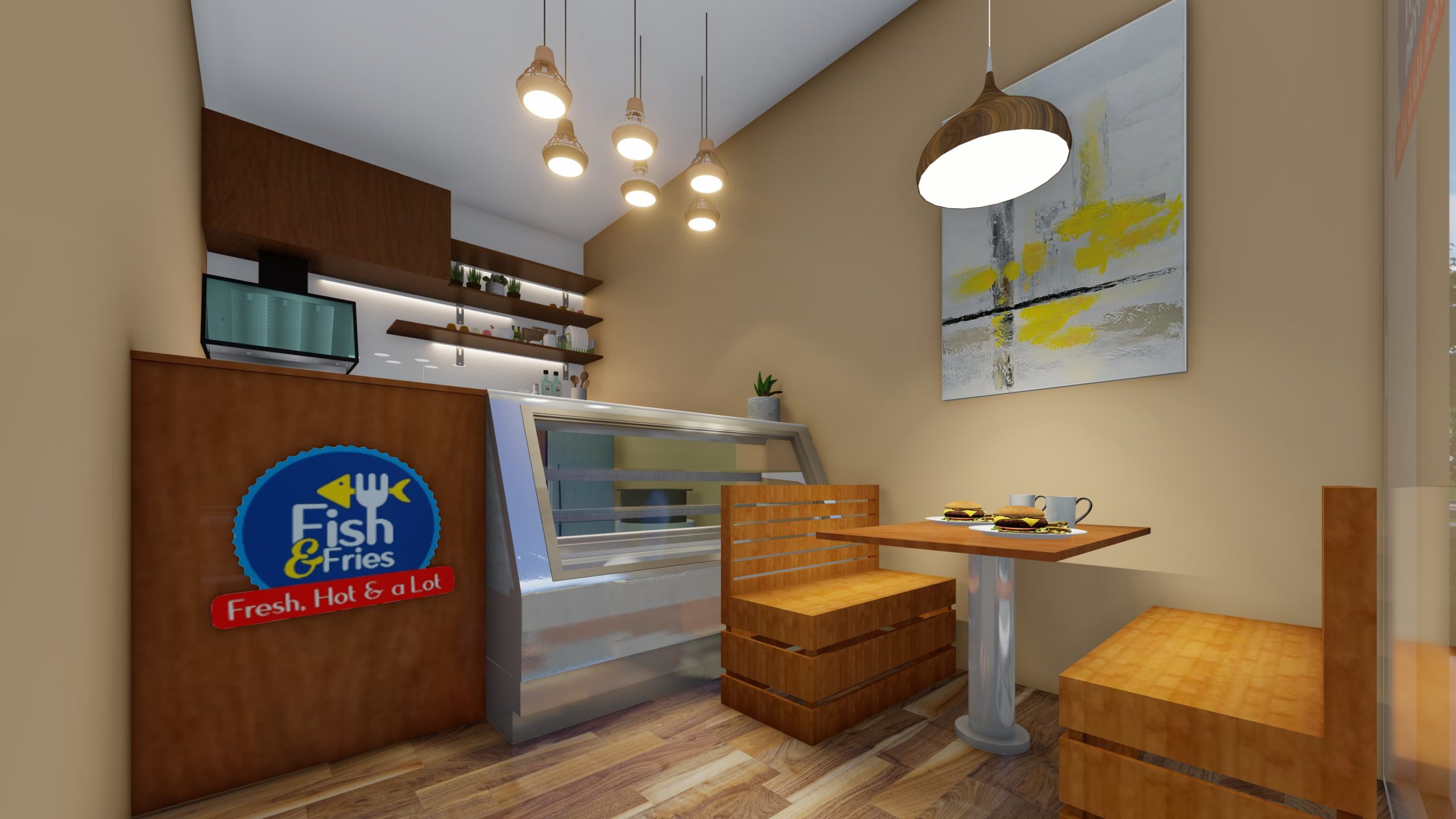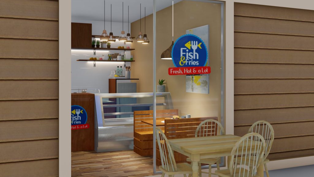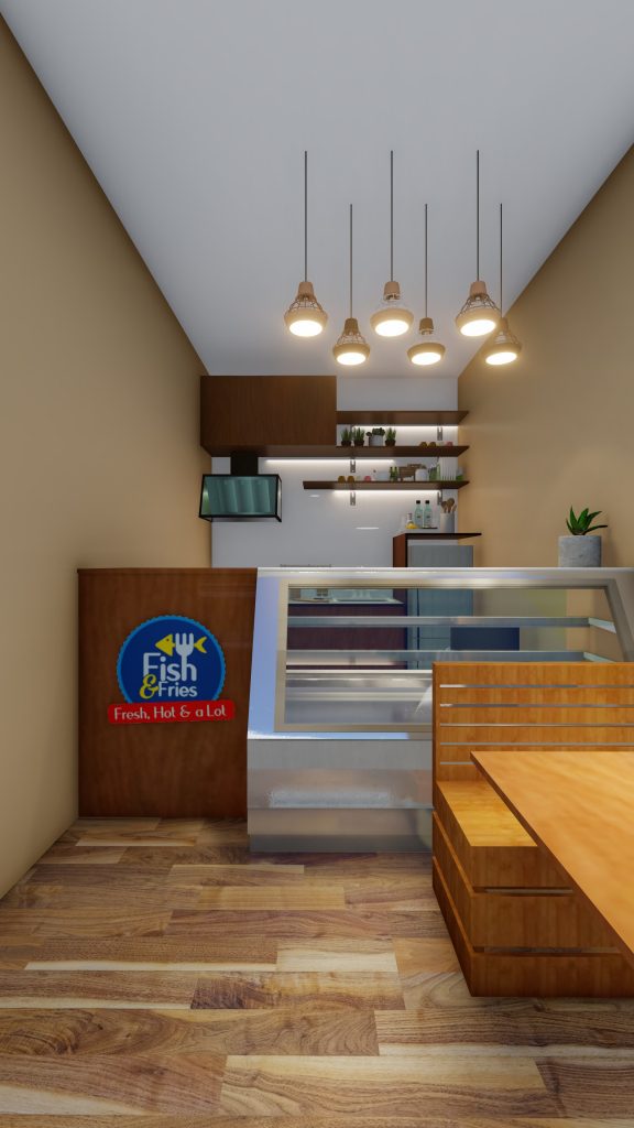 RESTAURANT INTERIOR Restaurant InteriorLocation: Nikunjo, DhakaArea: 15′ X 7′-10″Client: Faizur RahmanDesigner: Tawsif MunawarVisualization: Maruf Hossain