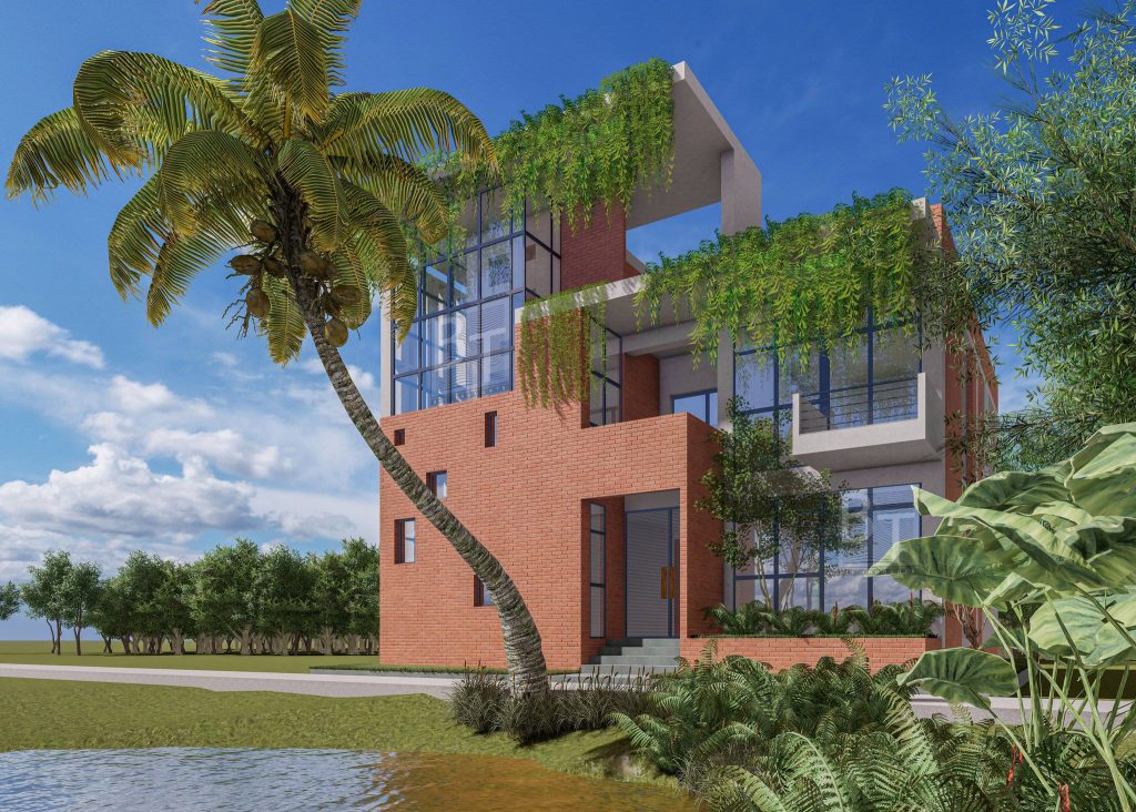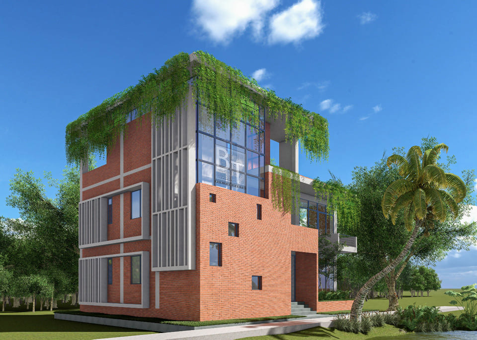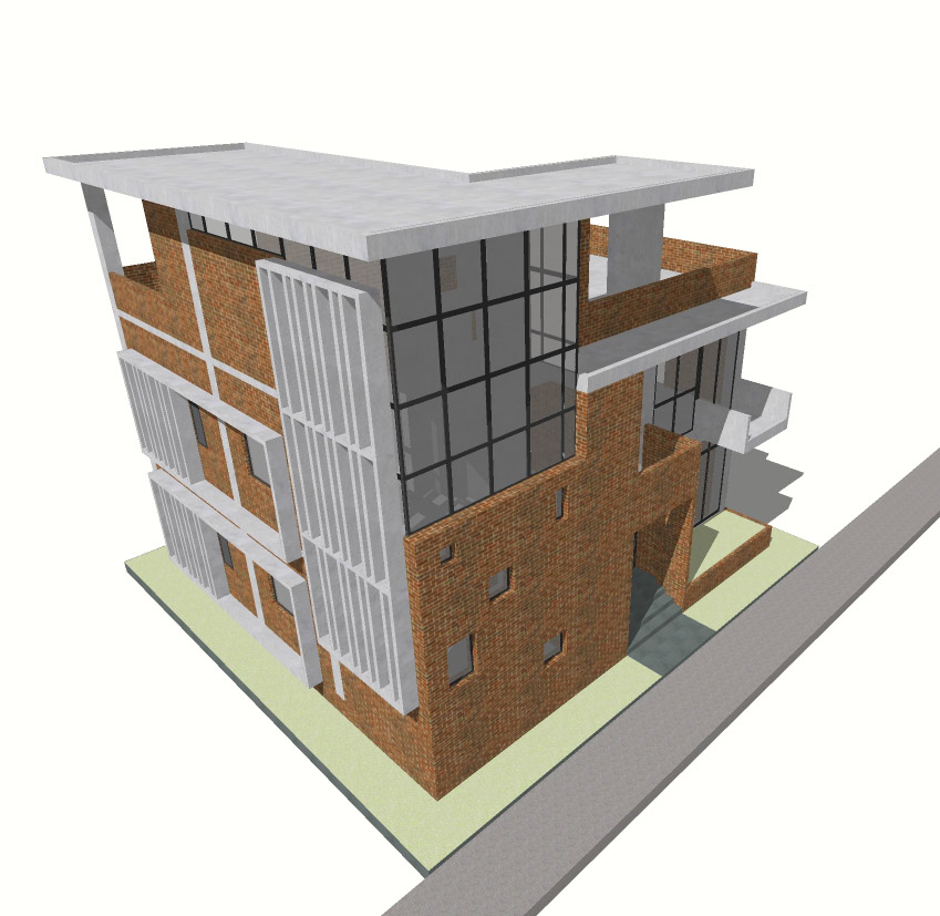The site for this project is located at Tribidda village, which is situated in Madhya, Cumilla. The site area is about 1680 SqFt. It faces towards the south and there is a pond on the south side adjacent to the road. Our idea was to make a noticeable architecture between the neighborhood, incorporate south breeze with both units and cut the glare of West. We have used veranda, glass, various punches to invite light and air from the south, and shading devices at West Facade to reduce heat. The client demanded two separate units on two floors, each containing 1 Master Bedroom, 2 Bedrooms, 1 Common Toilet, Kitchen, Dining, and Living. All these functions were successfully accommodated with the consideration of light and ventilation. We have also made a celebrated entrance and staircase. Master Bedrooms on both floors will have a nice view of the waterbody.